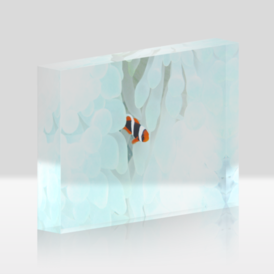 アクリルブロック - 148x100mm真っ白なイソギンチャクの中を、小さなカクレクマノミの幼魚が行ったり来たり、まるでかくれんぼをしているようでした。 この商品はpixivFACTORYで作られた商品です。サンプル画像は完成イメージのため、実物と異なる場合があります。