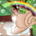 梅雨の晴れ間、カエルのカップルはカタツムリに乗って、のんびりとドライブです。雨の雫が久しぶりに顔を覗かせた太陽に、キラキラ輝いています。虹のアーチをくぐって、お隣の池までお出かけするのかな。