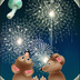夏の夜を彩る花火。楽しみにしているのは人間だけではありません。山のタヌキの親子も遠くから眺めています。時折吹く夜風に涼みながら、夏の夜空に咲く満開の光の花を楽しんでいるのでしょうね。