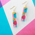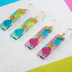 光が拡散するプリズムの様に多彩な色合いと輝きが特徴のピアス/イヤリングです。 幾何学的な組み合わせと光を通す様がまるでステンドグラスのようです。 色の組み合わせと、透明感で魅せることにこだわって、長いこと検討してきたアクセサリーです。 色合いに加えて、金のラメがアクセントとなり、耳元で揺れた際にキラキラと輝きます。 本体を繋ぐ際に、透明な部分に金具が見えてしまうのは避けたいと解決策を探していたらいつの間にか半年経っていました^^; そんな金具の付け方一つに悩むくらい、ただただシンプルに透明感を追求した作品です。 色を付ける際も、手袋着用の上、集中力向上の音楽をかけて、ホコリやチリの混入に細心の注意を払っています。 縦4㎝ほどあり、色合いと輝きでファッションの主役になれるアクセサリーかと思います。 ショートカットや、ロングなら是非髪を上げて、耳元がより見える形で着けてみて欲しいです。 アクセサリーを着けて、より多彩な日々、多彩なファッション、多彩な自分を楽しんで頂けたら嬉しいです。 ☆別の色合い(画像4枚目)もあるので、そちらも合わせてご覧ください。 ☆縦4㎝×横1㎝☆ ※細心の注意を払っていますが、微細なホコリ、チリ等が入っている場合があります。目立つものは省いていますが、完全に防ぐことは難しいので多少の混入はご了承ください。 ※水濡れにはお気をつけください。 ※イヤリングをご希望の方は本体をカートに入れた後に、「イヤリングに変更」を追加でカートにお入れください。