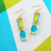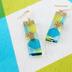 光が拡散するプリズムの様に多彩な色合いと輝きが特徴のピアス/イヤリングです。 幾何学的な組み合わせと光を通す様がまるでステンドグラスのようです。 色の組み合わせと、透明感で魅せることにこだわって、長いこと検討してきたアクセサリーです。 色合いに加えて、金のラメがアクセントとなり、耳元で揺れた際にキラキラと輝きます。 本体を繋ぐ際に、透明な部分に金具が見えてしまうのは避けたいと解決策を探していたらいつの間にか半年経っていました^^; そんな金具の付け方一つに悩むくらい、ただただシンプルに透明感を追求した作品です。 色を付ける際も、手袋着用の上、ホコリやチリの混入に細心の注意を払っています。 縦4㎝ほどあり、色合いと輝きでファッションの主役になれるアクセサリーかと思います。 ショートカットや、ロングなら是非髪を上げて、耳元がより見える形で着けてみて欲しいです。 アクセサリーを着けて、より多彩な日々、多彩なファッション、多彩な自分を楽しんで頂けたら嬉しいです。 ☆別の色合い(画像4枚目)もあるので、そちらも合わせてご覧ください。 ☆縦4㎝×横1㎝☆ ※細心の注意を払っていますが、微細なホコリ、チリ等が入っている場合があります。目立つものは省いていますが、完全に防ぐことは難しいので多少の混入はご了承ください。 ※水濡れにはお気をつけください。 ※イヤリングをご希望の方は本体をカートに入れた後に、「イヤリングに変更」を追加でカートにお入れください。