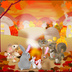 秋色に染まる森の中、落ち葉を集めてたき火が始まりました。キノコハウスやドングリハウスから、皆出てきてたき火に集まります。それぞれに持ち寄った木の実などを焼いて食べるのでしょうか。秋の恵を頂く、森の晩餐会の始まりです。