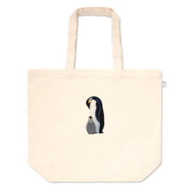 トートバッグ - L - プリント面積中ペンギンの親子、いつもお母さんと一緒 この商品はpixivFACTORYで作られた商品です。サンプル画像は完成イメージのため、実物と異なる場合があります。