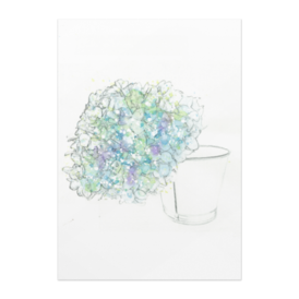 ポスター - B3カップに生けられたシンプルな紫陽花というイメージで制作いたしました。 *画像は額装した際のイメージです。実際の商品に額縁は付きませんのでご了承お願いします。 --- 使用画材 --- ・インク ・鉛筆 ・水彩絵の具