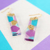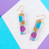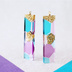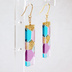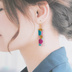 プリズムを通して拡散した光の様に多彩な色合いと輝きが特徴のピアス/イヤリングです。 幾何学的な組み合わせと光が透ける様がまるでステンドグラスのようです。 色の組み合わせと、透明感で魅せることにこだわって、長いこと検討してきたアクセサリーです。 色合いに加えて、金のラメがアクセントとなり、耳元で揺れた際にキラキラと輝きます。 -------------------------------------------------- 【作品について】 作品の透明感を損なわないように、イヤリングやピアスの金具とどう繋げるかで半年以上悩みました^^; それくらい、ただただシンプルに透明感と色を最も美しく見せることを追求した作品です。 各色のサイズやバランスなども試作や下書きを数度重ねて今の形になっています。 たった2色(+金)で生み出される色の奥深さを見て頂きたいです。 -------------------------------------------------- 【着用について】 縦4㎝ほどあり、色合いと輝きでファッションの主役になれるアクセサリーかと思います。 サイズは大き目ですが、アクリル製なので重さを感じない軽い着け心地なのもポイントです。 ショートカットや、ロングなら是非髪を上げて、耳元がより見える形で着けてみて欲しいです。 揺れると、プリズムのように多彩な表情を見せるので、それを全面に出して楽しんで頂けたら^^ -------------------------------------------------- 作品名の「プリズマティック」はプリズムを通したときの拡散した光を意味していて、転じて「多彩な」、「色とりどりの」などの意味があります。 このアクセサリーで、いつもと違う自分を表現してもらえたらという思いでつけました。 アクセサリーを着けて、より多彩な日々、多彩なファッション、多彩な自分を楽しんで頂けたら嬉しいです。 ☆別の色合い(画像6枚目)もあるので、そちらも合わせてご覧ください。
