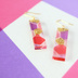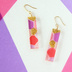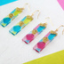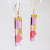 プリズムを通して拡散した光の様に多彩な色合いと輝きが特徴のピアス/イヤリングです。 幾何学的な組み合わせと光が透ける様がまるでステンドグラスのようです。 色の組み合わせと、透明感で魅せることにこだわって、長いこと検討してきたアクセサリーです。 色合いに加えて、金のラメがアクセントとなり、耳元で揺れた際にキラキラと輝きます。 -------------------------------------------------- 【作品について】 作品の透明感を損なわないように、イヤリングやピアスの金具とどう繋げるかで半年以上悩みました^^; それくらい、ただただシンプルに透明感と色を最も美しく見せることを追求した作品です。 各色のサイズやバランスなども試作や下書きを数度重ねて今の形になっています。 たった2色(+金)で生み出される色の奥深さを見て頂きたいです。 -------------------------------------------------- 【着用について】 縦4㎝ほどあり、色合いと輝きでファッションの主役になれるアクセサリーかと思います。 サイズは大き目ですが、アクリル製なので重さを感じない軽い着け心地なのもポイントです。 ショートカットや、ロングなら是非髪を上げて、耳元がより見える形で着けてみて欲しいです。 揺れると、プリズムのように多彩な表情を見せるので、それを全面に出して楽しんで頂けたら^^ -------------------------------------------------- 作品名の「プリズマティック」はプリズムを通したときの拡散した光を意味していて、転じて「多彩な」、「色とりどりの」などの意味があります。 このアクセサリーで、いつもと違う自分を表現してもらえたらという思いでつけました。 アクセサリーを着けて、より多彩な日々、多彩なファッション、多彩な自分を楽しんで頂けたら嬉しいです。 ☆別の色合い(画像5、6枚目)もあるので、そちらも合わせてご覧ください。