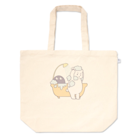 トートバッグ - L - プリント面積中この商品はpixivFACTORYで作られた商品です。サンプル画像は完成イメージのため、実物と異なる場合があります。 お風呂がこわいくまのトートバッグです。 実際におばけはついてきませんのでご安心ください。