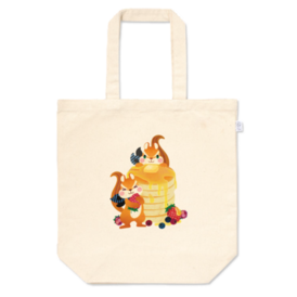 パンケーキに群がるシマリスさんのイラストをプリントしたトートバッグです。 この商品はpixivFACTORYで作られた商品です。サンプル画像は完成イメージのため、実物と異なる場合があります。