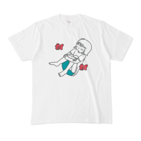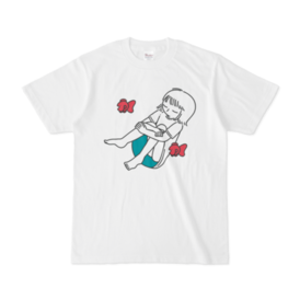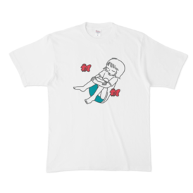 Tシャツ - XL - 白のったりゆらゆら。 さかなと、三角座りの女の子のシャツです。 この商品はpixivFACTORYで作られた商品です。サンプル画像は完成イメージのため、実物と異なる場合があります。