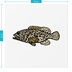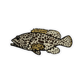 ステッカー - 100 x 100 (mm)日本近海で見られるハタの仲間たちを描いたハタスケッチから「カンモンハタ」のクリアステッカーです。黄色い体に茶色い斑点模様がかわいいお魚です! カンモンハタ推しの方はぜひ!