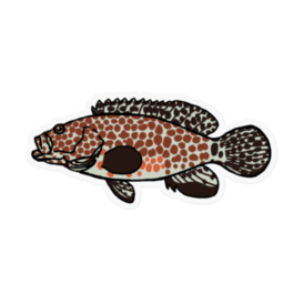 日本近海で見られるハタの仲間たちを描いたハタスケッチから「モヨウハタ」のクリアステッカーです。灰色に赤茶色や橙色の大きな斑紋が並ぶ美しい体のお魚です! モヨウハタ推しの方はぜひ!