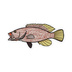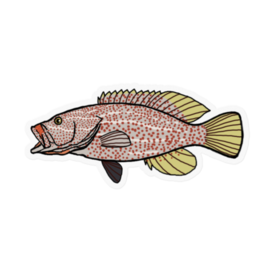 ステッカー - 100 x 100 (mm)日本近海で見られるハタの仲間たちを描いたハタスケッチから「アズキハタ」のクリアステッカーです。灰色の体に明るい線、橙の細かい斑点や黄色いヒレなど非常に特徴的なお魚です! アズキハタ推しの方はぜひ!