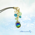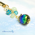 万華鏡のように美しいホタル玉のストラップです。 たくさんの種類があるとんぼ玉の中でも、ホタルガラスと呼ばれる種類です。 銀箔の上からブルー~イエローのガラスを重ね、この美しい色合いが表現されています。 ブラックのガラスの中に不思議な色合いのガラスが覗く姿は美しく、ずっと見ていても飽きません♪ 慶良間諸島の砂浜~深海をイメージした光り輝くグラデーションはとても神秘的です。 淡いグリーンの天然石カルセドニー、煌くスワロフスキーなどがホタル玉を惹きたて彩っています。 ストラップ金具はビーズが外れる心配のない2重カン、各ビーズもワイヤーを巻くメガネ留めという技法で繋いでいるため、外れて壊れる心配が少なく、長くお使いいただけます。 ★ホタル玉(ホタルガラス)★ ・銀箔とガラスを組み合わせ特殊な技法で作られています。 ・銀箔が反射する光の様子から「ホタルガラス」の名がつけられたとんぼ玉。 ・職人の手仕事の為、1つとして同じものはありません。 ★カルセドニー★ ・精神を安定させ、判断力、集中力を高める。 ・冷静に物事を判断できるように精神的な成長を促す。 ・人間関係を改善し、心の安定感と癒しをもたらしてくれる。 ・優しさ、愛情を育む石。 【主な使用ビーズ】 ホタル玉 ケラママリン 10mm 天然石 グリーンカルセドニー スワロフスキー インディゴライト チェコメロン ブルー×ゴールドライン チェコマシンカットガラス ジョンキル ストラップ紐:ブラック 金具カラー:ゴールド 【サイズ】 長さ 約3.8cm(ストラップ金具は除く)