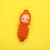 キューピーちゃんがソーセージに! 市販されているキューピー人形に、オリジナルの衣装を編んで着せています。 素材:刺繍糸(洋服)、5cmキューピー(非フタル酸) サイズ:高さ約8cm×横幅約4cm