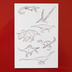 恐竜の絵を転写タトゥーシールにしました。 画面上、白地に見える部分は実際には透明になります。 貼り付けたときには、写真とは左右反転します。 恐竜の絵7種を鉛筆描きのスケッチ風に描きました。上からモササウルス、プテラノドン、イグアノドン、トリケラトプス、ヴェロキラプトル、スピノサウルス、プレシオサウルス。 全7点。 絵柄のサイズ 長辺43~82mm。 水で湿らせて貼り付けるだけなので簡単。はがすこともすぐできます。 タトゥーシールとして肌につける以外にも、プラスチックや金属など表面がなめらかなものに貼り付けられます。 【素材】 市販の転写シール 透明タイプ 【サイズ】 幅100×高さ148mm(はがきサイズ) 【購入の際の注意点】 表面の粗いものにはきれいに転写できません。 水を使って転写させるため、紙など水に弱いものには転写できません。 肌に転写した場合は一日を目安にはがしてください。 シートは湿気を吸いやすい性質があるので、なるべく早めにお使いください。
