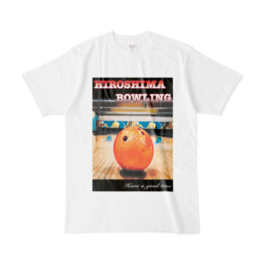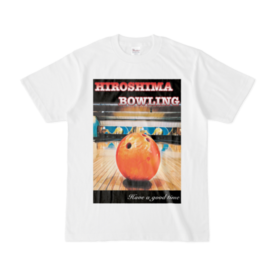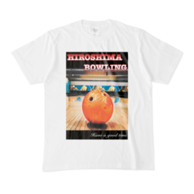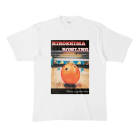 ボウリングの球とレーンを写したプリントアートTシャツ。 ※注意 こちらは同名商品のカラーTシャツ仕様と比較して、洗濯時の色落ちが早いので、ご了承ください。