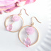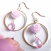 にじさんじ ジョー・力一 イメージアクセサリー ピンクがかった薄紫の薔薇と大粒の涙形ピンクトパーズ、 シンプルな金色のサークルで大人ぽさをだしたピアス/イヤリング。 薔薇と涙でりきいちさんの雰囲気を持ちつつ、普段使いできる可愛らしいものを作りたくてこのデザインに落ち着きました。 薔薇はシェル素材。 アクセサリー用の接着剤で花の向きを表に固定していますが、 薔薇とトパーズ自体は持ち主の動きに合わせて揺れる仕様です。 トパーズはアンティークのピンクトパーズとして購入した石ですが おそらく鮮やかなピンク色にコーティングしていると思われます。 そのため大粒で内包物がほぼない石でも安価にしました。 ※重要※ 購入時に金具を指定してください。連絡がない場合は写真の物が届きます。 1.金属フープピアス 2.金属フックピアス 3.樹脂フックピアス 4.金属イヤリング 5.樹脂ノンホールピアス