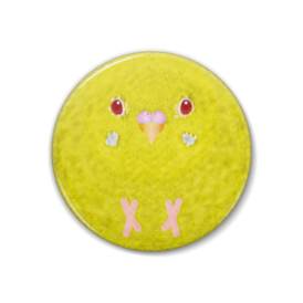 セキセイインコ、ルチノー、オス【まるい鳥の缶バッチ】