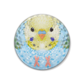 セキセイインコ、パステルレインボー灰レース、オス【まるい鳥の缶バッチ】