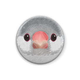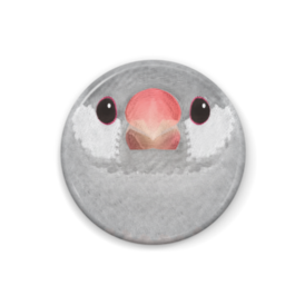 シルバー文鳥、メス【まるい鳥の缶バッチ】