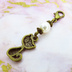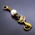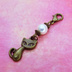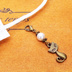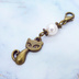 マスクチャーム アンティークカラーの猫モチーフとスワロフスキーパール(クリスタルホワイト)のチャーム キーホルダー