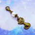 アンティークカラーの猫モチーフとスワロフスキーパールを組み合わせたチャームです シンプルに、コンパクトに仕上げたチャームなのでマスクチャームやちょっとした飾りには最適です アンティークカラー(金古美色)の落ち着きある雰囲気とともにしっかりと猫好きをアピールできるアイテムになってます 耳周りにつけるとピアスのように見えます マスク以外にもチャームとしても使えますので、キーホルダーの彩りにも、デスクで飾って猫をお散歩させたり、お手持ちのチェーンに通せばネックレスにもなります マスクチャームとしてご利用の場合には紐状のマスクに適しています ※金具などはスチール製ですので、金属アレルギーの方はご注意ください ※こちらは金具のカニカンをナスカンに変更が可能です。フィット型のヒモ部分が広いマスクに適しています ナスカンに変えればキーホルダーとしてご利用いただけます ※別カラーバージョンもございます。ご覧ください 「スワロフスキー・クリスタル」 スワロフスキーは100年以上もの歴史のあるオーストリアのクリスタルガラス製造会社が生み出すクリスタルガラスです。その独自の製造法とカッティング技術により生み出されるクリスタルガラスは透明度と光の屈折率が高くてとても美しい輝きを放つとされています。当方では一般販売されている素材を利用させていただいています 「スワロフスキー・パール」 クリスタルガラスに本物と同じ輝きのパール加工と、その上にマットカラーのようにも見えるエフェクトを施しています。従来の人工パールにはない真円形で傷のない仕上がりが特徴です 「材質」 猫モチーフ :亜鉛合金:メッキ加工 スワロフスキーパール:クリスタルホワイト 金具:スチール 「サイズ」 全長(カニカン含む):約42mm 猫モチーフ:約16×11mm スワロフスキーパール:直径約:6mm 重量:約1.5グラム ※ご使用のモニターの色の違いにより、実際の商品と色味が若干異なる場合がございます。予めご了承ください NN-MC95