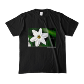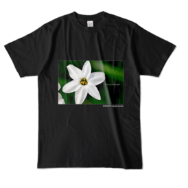 カラーTシャツ - XL - ブラック (濃色)タマスダレをモチーフにした作品をTシャツ(黒)にしました。 SAGARA photo worksロゴ入り。 ※この商品はpixivFACTORYで作られた商品です。サンプル画像は完成イメージの為、実物と異なる場合があります。