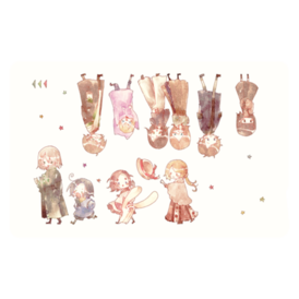 残滓の庭のキャラクターたちが描かれたICカードステッカーです。たくさんいろんなところへ連れて行ってくださいね。
