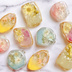 お花やパールなどを埋め込んだアゲートスライス風のアクセサリーです。 全長約2〜2.5cm *ご購入後にご希望の金具をメッセージにてご連絡下さい。(特にご連絡が無い場合はイヤリングでお送り致します。) *金属の金具やレジンを使った作品になりますので、アレルギーのある方はご注意下さい。 *簡易包装になりますのでご了承ください。(国内発送のみ、クリックポストでお送り致します。) * 1つずつ丁寧に作ってはいますが、ハンドメイド品のため市販品よりも強度は劣りますのでご注意ください。 また、レジンパーツは素人作成です。気泡、バリ、かけ、歪み、凸凹がある場合があります。大きさや歪みなどハンドメイド特有の個体差などもありますので、ご理解のある方のみお求め下さい。 *使用中の破損に対する返品・交換・修理対応は行なっておりません。 配送中のトラブルに関しては、すぐにご対応いたしますのでご連絡下さい。