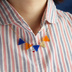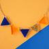 カラフルなガーランドネックレスのシリーズです。 濃いブルーとクリアカラーのオレンジを合わせて落ち着いた夏色に仕上げました。アクセントに加えたゴールドラメがポイントです。 キリっと引き締まった元気の出る組み合わせ、是非夏の装いに加えてみて欲しいです。 三角パーツはアクリル板から自前でカットしたオリジナルパーツになります。 様々な色の中から3~4色を組み合わせて色々なバリエーションをご用意しています。 パーツに限りがあり同じ組み合わせがもう一度出せるかは不確定なため、お気に入りの色合いはお見逃しのないように^^ 三角が綺麗に連なって見えるように、三角パーツの側面に一つ一つ手作業で穴を開けてるのが密かなこだわりです。 長さはシャツの襟からガーランドがのぞく程にしているので(三枚目参照)、襟なしはもちろん、Yシャツなどにも合わせるのもおススメです。 シンプルな装いにカラフルな三角プラスしてみませんか? ☆全長50㎝☆