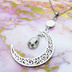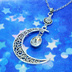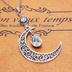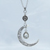アンティークシルバー アラベスク調の透かし模様の入った三日月にラインストーンのムーンネックレス 長さ調整可