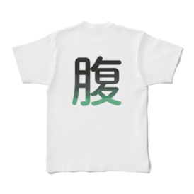 Tシャツ - XL - 白背中側に「腹」の字が書かれたTシャツです。 これだけ大きく書けば背も腹になるんじゃないか、って。 Tシャツの前面は無地です。 この商品はpixivFACTORYで作られた商品です。サンプル画像は完成イメージのため、実物と異なる場合があります。