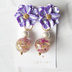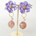 紫の花とコットンパール&レジンの揺れるピアス・イヤリング