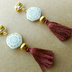 エスニック柄パーツとコットンタッセルのイヤリング(ivory)