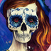 woman,universe,spiritual,sugar,angel,goddess of death,flowers,queen,gothic,skulls,mythology,painting,