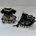 ゴスロリ風のワンピースとヘッドドレス作ってみました😊 黒地をベースにシルバーのスカート、飾りレースを、二重にしてスカートを作りました。 ゴールドの襟、後ろホック仕様です。 ヘッドドレスはリボンレイ を編み込みフリルをつけ両サイドにリボンレイ で飾りを付けました。 ヘッドドレスの方サイドにはチェコビーズを2個付けました。 セット販売なので、単品販売より少しお安くしております! およそ10〜12cmサイズに対応する様にお作りしておりますが、全てに対応出来るとは限りません。 【見本のぬいぐるみはツイステのEXマスコットです。】 ※ ぬいぐるみは見本なので、付属しません。 ★お洗濯はご遠慮下さい。 ★ハンドメイド商品のお値下げはご容赦ください。 ☆ご質問等がございましたら、お気軽にコメント下さい(*^^*) 即購入大歓迎です! #ぬい服 #ぬいぐるみ #ぬいぐるみ服