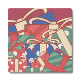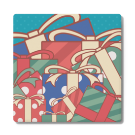 プレゼントボックスがいっぱいのコースターです。 色とりどりのプレゼントがあなたのお飲み物を受け止めます。 クリスマスパーティーやお誕生日会、お茶会などのアイテムとしていかがですか? 色は2種類ございますのでお好きな柄でお楽しみ下さい。 ※この商品はpixivFACTORYで作られた商品です。サンプル画像は完成イメージのため、実物と異なる場合があります。
