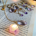 👑カラー Intimitésとお揃いのネックレスです。 同じ粒を使用した、大粒で存在感があるネックレスです。 クォーツの下からくっきりと文字が浮き上がるほどの透明感。 そして何より大きさが素敵です。 セーターを着ることが多くなる季節。 首からすぽっとかぶれるようにチェーンは長くとり、胸の前で留めるようにしました。 Intimitésにも添えていた星型のブランデーシトリンのチャームを添えて。 こちらは着脱式です。 タイトルはune autre。 もうひとつ、と言う意味です。 親密な2人のもうひとつの物語と言う思いを込めて。 胸に揺れるお色を、そっと楽しんでいただけたらとても嬉しく思います。 使用石: ピンクアメジスト 2センチ〜2.3センチ ブランデーシトリン ブラウントパーズ スペサルタイト 全長: 62センチ (うちアジャスター6センチ) 素材: サージカルステンレス 14kgf ※ハンドメイド作品ですので、工場製品ほどの強度ではありません。 優しく扱っていただきますようお願いいたします。 ※天然石には、クラック(ヒビ)や、欠け、色ムラが見られる場合がございます。 素材の魅力としてご理解いただけましたら幸いです。
