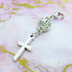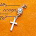 マスクチャーム アンティークシルバー ロザリオ(十字架)と透かし入りメタルビーズのコンパクトなチャーム