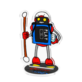 ステカセキングが自身のお掃除道具を抱えたアクリルスタンドフィギュアです。 この商品はpixivFACTORYで作られた商品です。サンプル画像は完成イメージのため、実物と異なる場合があります。