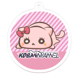アクリルキーホルダー(コーティング) - 50 x 50 (mm)あらら、こばにゃんがペチャンコに!? どこかで見たような、懐かしさもある可愛いキーホルダーです。