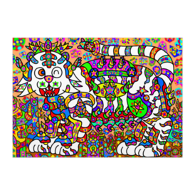 ポスター - B2この商品はpixivFACTORYで作られた商品です。サンプル画像は完成イメージのため、実物と異なる場合があります。 四聖獣の一つであり、西を守護する聖獣です。属性は金であり、色は白となります。本来の白虎はシマウマのように白と黒のまだら模様なのですが、見ていて楽しい感じにしたくて、カラフルな模様で描きました。
