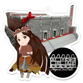 自作の長野市民会館とその化身である「ラティ」を配置した豪華なアクリルキーホルダー!絵柄が大きめなので、インパクトもあります。