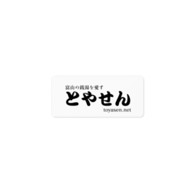とやせんステッカー 小 50mm × 20mm 富山ver 富山の銭湯を愛す 銭湯好きの方々には、ぜひ持っていていただきたい逸品です。お風呂上がりの気分を引き締めつつ、自分の銭湯愛をアピールすることができます。 とやせん公式ステッカーを手に入れれば、あなたも一緒に銭湯文化の輪を広げることができます。ぜひともご支援いただければ幸いです。 ※ステッカーの貼り付け場所や取り扱いにはご注意ください。 この商品はpixivFACTORYで作られた商品です。サンプル画像は完成イメージのため、実物と異なる場合があります。