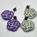 刀剣乱舞-ONLINE-骨喰藤四郎、鯰尾藤四郎のイメージピアスです。 それぞれ骨喰藤四郎は灰色・白、鯰尾藤四郎は紫・薄藤色の梅結び水引に、瞳の色をイメージしたパープルベルベットのソロバンビーズをあしらいました。水引部分が直径約2cm、ソロバンビーズは6mmです。 重量が1ペアで約1.5gと軽量ですので、装着時の負担が軽減されます。 金具はツリ針ピアス、玉ブラピアス(キャッチは在庫により金属製と樹脂製の2パターンがあります。ご希望ある場合はお申し付けください)、樹脂ノンホールピアス、ネジバネ玉ブライヤリングよりお選びいただけます。原材料費により、ネジバネ玉ブライヤリングのみプラス100円となります。ご了承下さい。