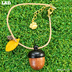 (木製どんぐり小物入れ、本革リーフ黄、松ぼっくりメタルチャーム、肉球メタルアジャスター、本革コード、樹脂粘土)