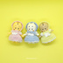 パステルカラーのふんわりしたワンピースです!帽子は後ろにずらしてもかわいいです! 市販されているキューピー人形に、オリジナルの衣装を編んで着せています。 オリジナルフィギュアのメイセンくんにも大きめですが着せられます。 お洋服のみはこちら⇒ https://studiomeisen.booth.pm/items/5100044 素材:刺繍糸(洋服)、5cmキューピー(非フタル酸) サイズ:高さ約5cm×横幅約4cm
