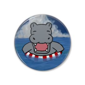 缶バッジ - 38mm海を満喫するかばにいさんです。