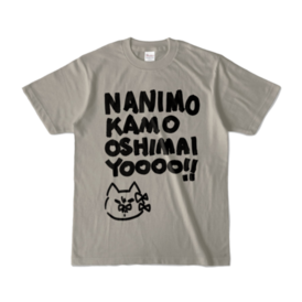 オシマイT 前面プリント カーキともグレージュともつかない色