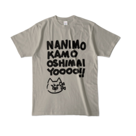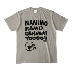 「もう終わりだ」というメッセージが強く打ち出されたTシャツです。字を覚えたてでローマ字を全部大声で朗読するお子様がいるおうちの方は注意して着用して下さい。 本商品は前面にプリント加工がほどこされています。乳首を隠したい方向けです。 色味はサンドベージュです。グレージュと呼ぶことが出来てしまう色味だと思います。 ボトムスは黒は勿論、各種ブルー&ブラック系デニム、あるいはテラコッタ、バーガンディー、ボルドーなどの赤みがかったものや、グリーン系も合わせやすいと思います。 クリームベージュやマスタードなどのイエロー系ボトムスは残念ながら自分は「あんまり合わないなあ」と思いました!! この商品はpixivFACTORYで作られた商品です。サンプル画像は完成イメージのため、実物と異なる場合があります。